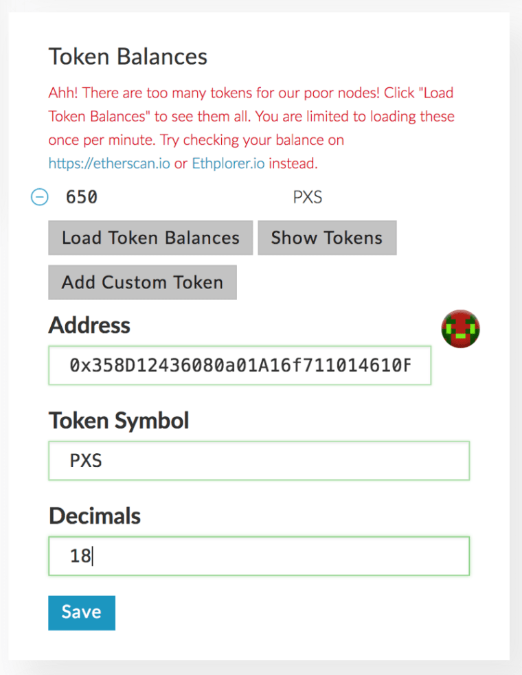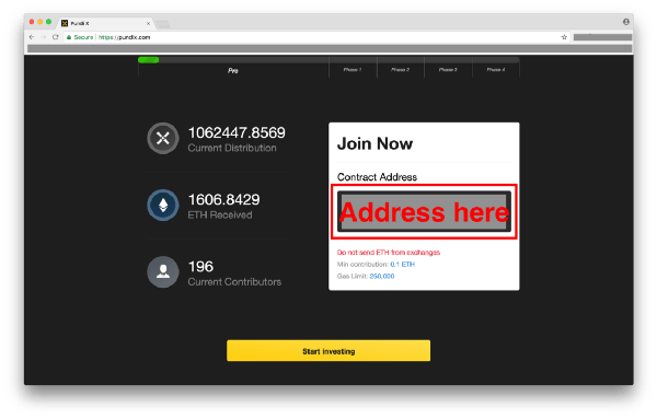 I plan to purchase 1 ETH and am expecting to receive 500 +150 PXS for Pre-Token sale bonus. First I will check the Pre-Token sale address and triple confirm it: