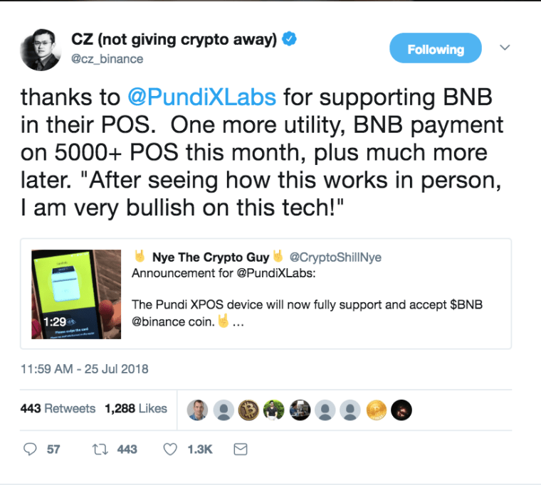 After thorough discussion with the Binance team and integration, we’ve confirmed that BNB, the native token that powers the world’s largest cryptocurrency exchange, will list on the first batch of the XPOS device for shipping.