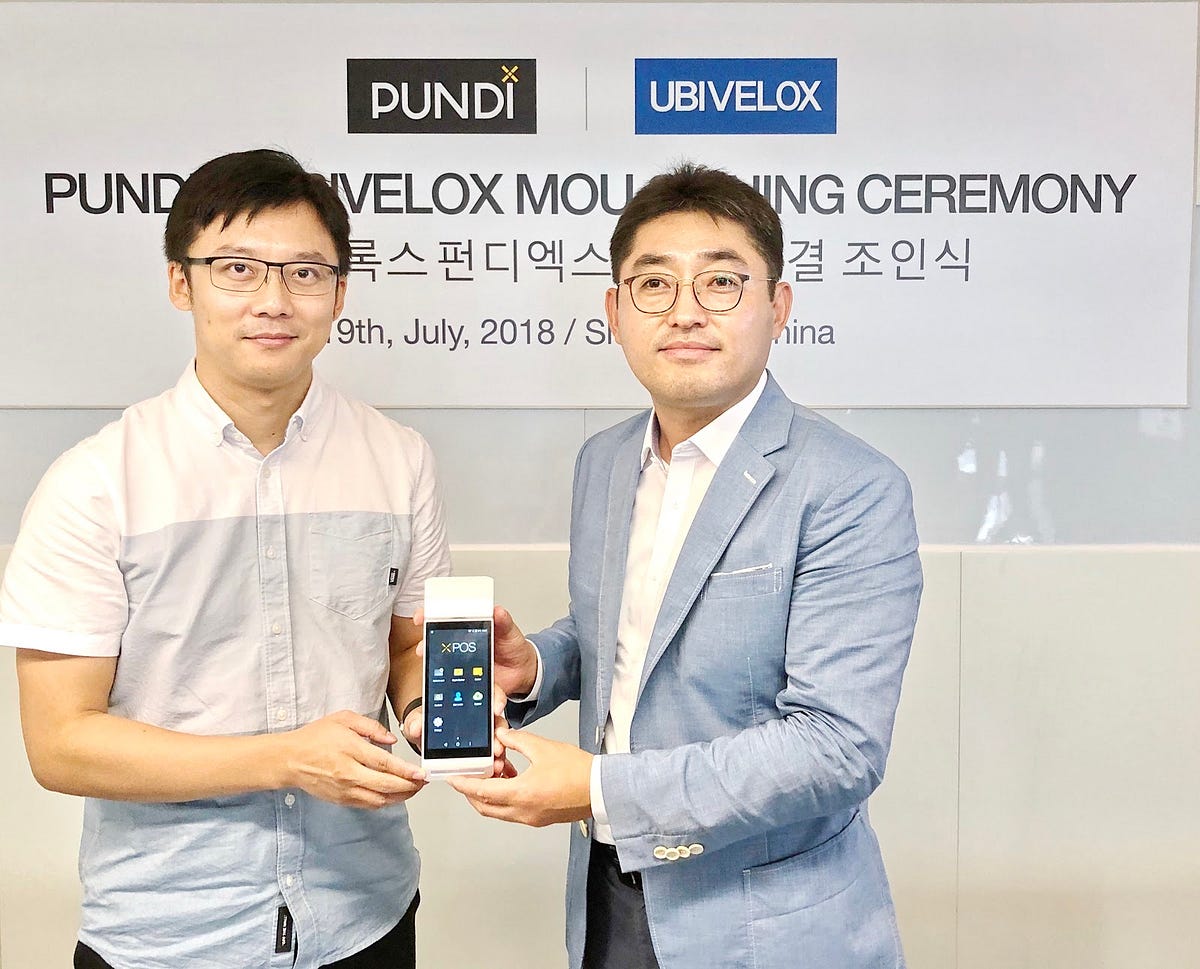 Jae Kwan Kim, Senior Vice President of UBIVELOX and Pitt Huang, Chief Technology Officer, signed MoU in Pundi X R&D Center in Shenzhen on July 19, 2018