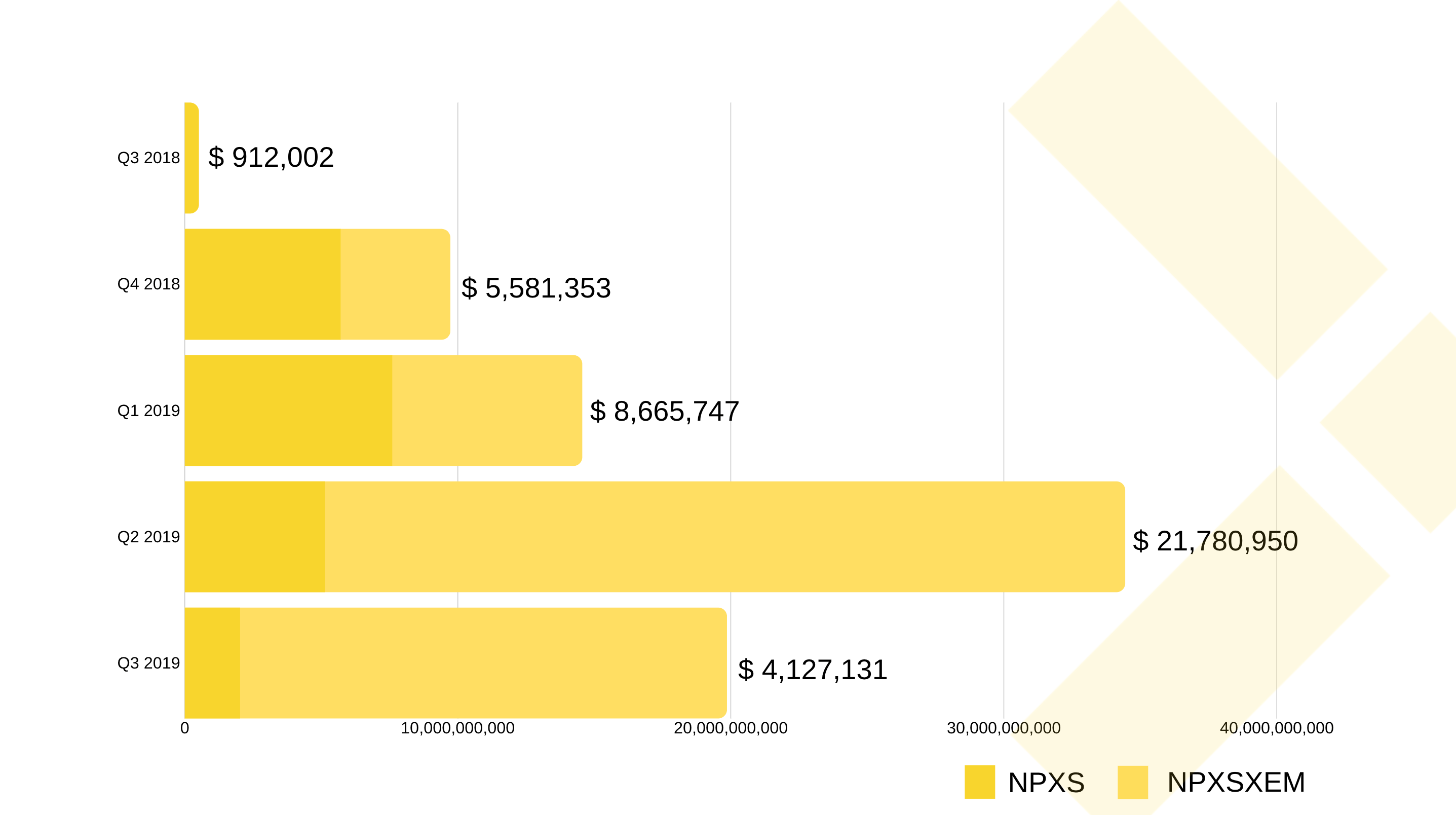 We took out approximately 19 billion tokens (2 billion NPXS and 17 billion NPXSXEM tokens) from their respective total supplies on 11 October. The amount of the NPXSXEM removal in this quarter is much higher because many NPXSXEM tokens were converted to FX tokens in June 2019.