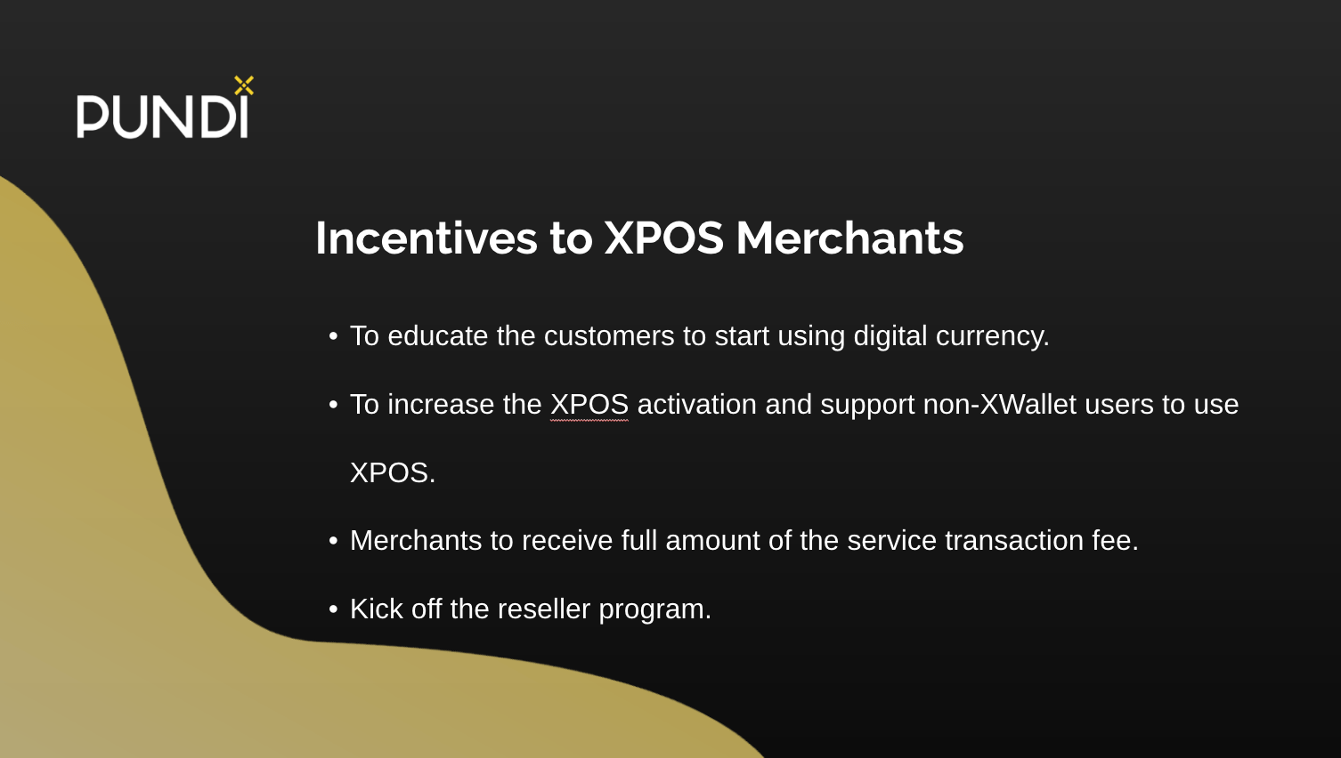 We remove the amount of token through the transaction proceed that generates for our revenue, which are doing by putting more XPOS everywhere and more transaction on XWallet. Apart from XPOS transaction and withdrawal fee being part of the token removal mechanics, we also have DApps and XWallet transactions as token removal incentives. Anyone who wants to encourage, every usage in XPOS and XWallet will contribute to the token removal.