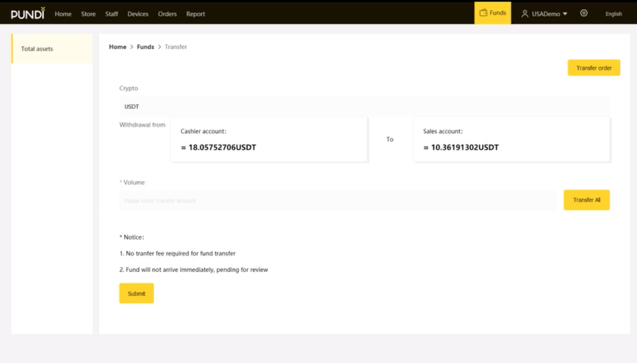 Merchant portal is the backend system for XPOS merchants to manage all their crypto transactions from the XPOS. Our latest update has enabled XPOS merchants to have the option to transfer the transacted amount which they have collected from their ‘Cashier’ accounts to their “Crypto Sales” accounts. This allows merchants to skip the usual depositing process for “Crypto Sales” and have funds transferred into their account faster in order to sell crypto on the XPOS.