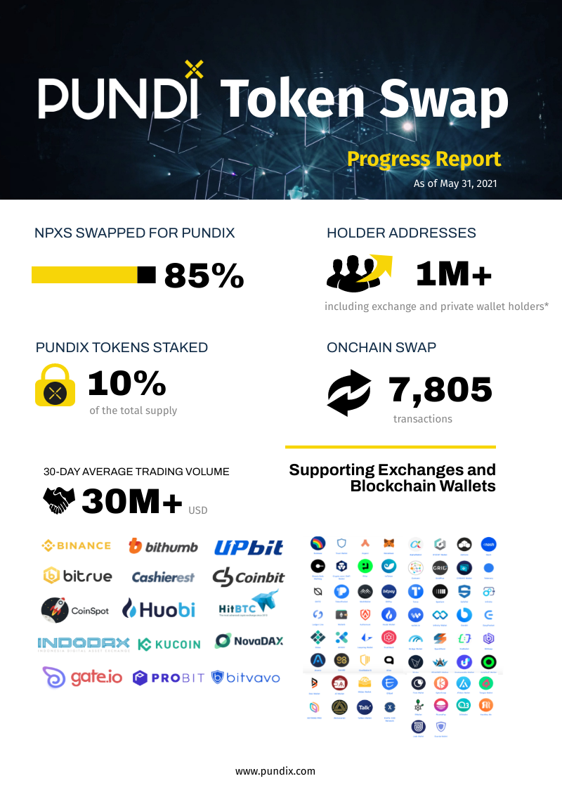 As of the date of this article, over 1 million $PUNDIX holders, including exchange and private wallet holders and there are about 85% of $NPXS tokens swapped for PUNDIX tokens.