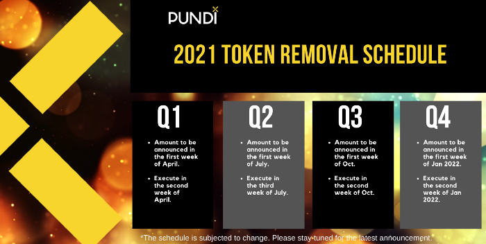 The token removal for Q2 2021 has been completed. We took out approximately 7,107.231 PUNDIX tokens and 8,233,411.37 NPXSXEM tokens from their respective total supplies.