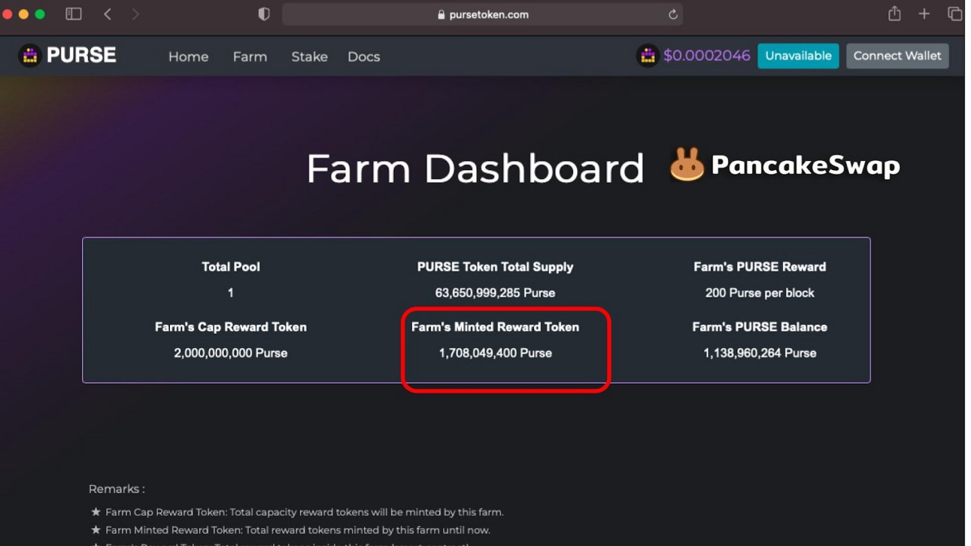 Less than 300 million $PURSE available in the Pancake swap LP re-staking farm