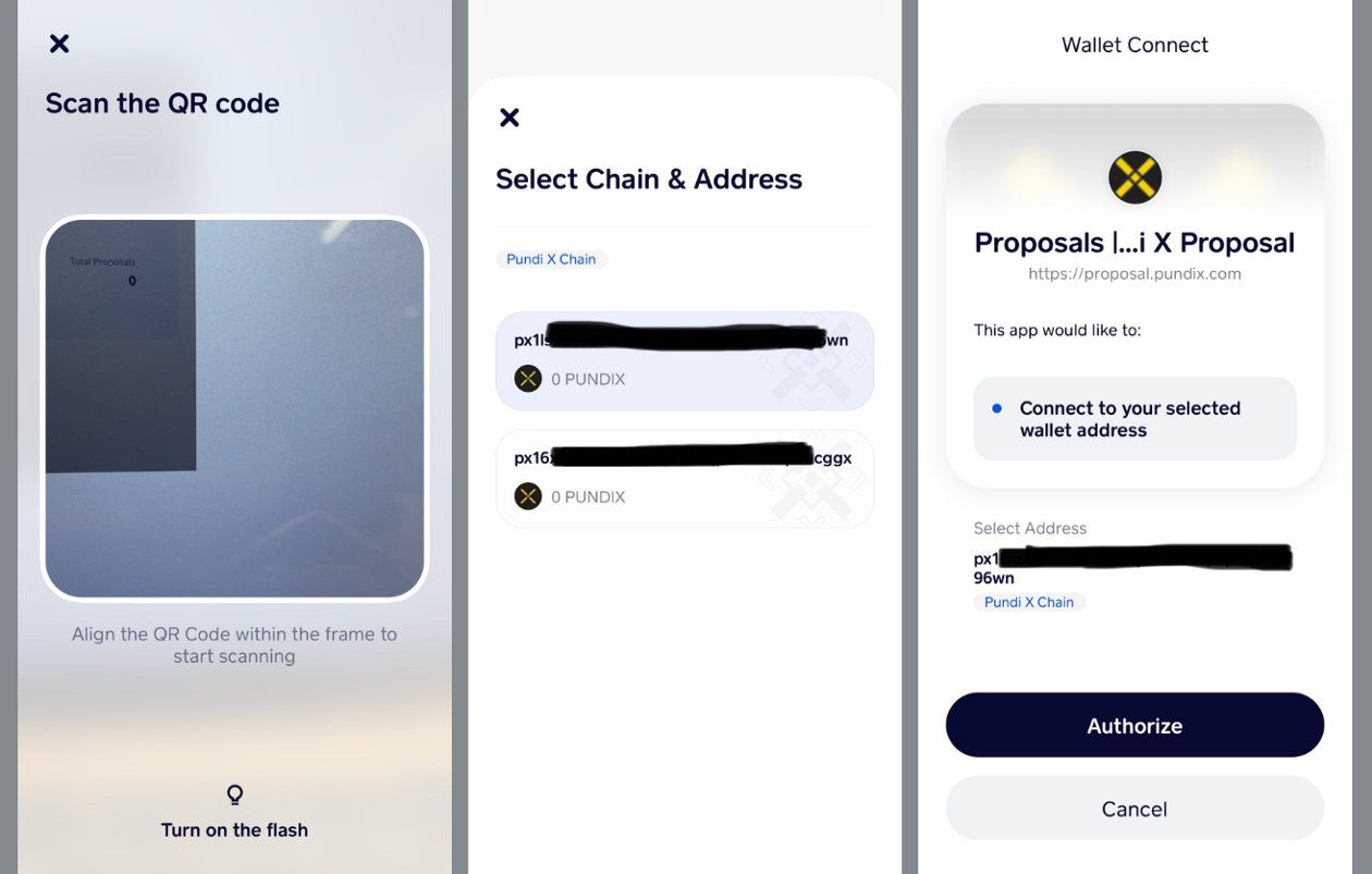 2. Open your f(x)Wallet to scan, select the address and authorize the connection.