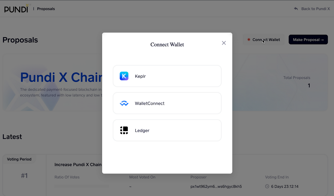 - Go to https://proposal.pundix.com/chain/pundix/proposals/1 with your desktop browser