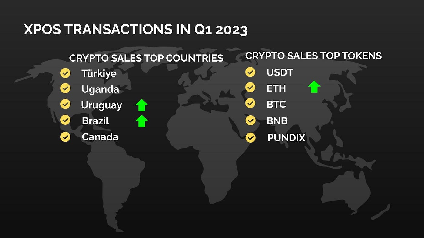 We also posted a quiz asking who the top five countries are that use crypto pay, and they are Türkiye, Uganda, Uruguay, South Africa, and Brazil. The top tokens used are USDT, PUNDIX, FX ETH, and BTC.