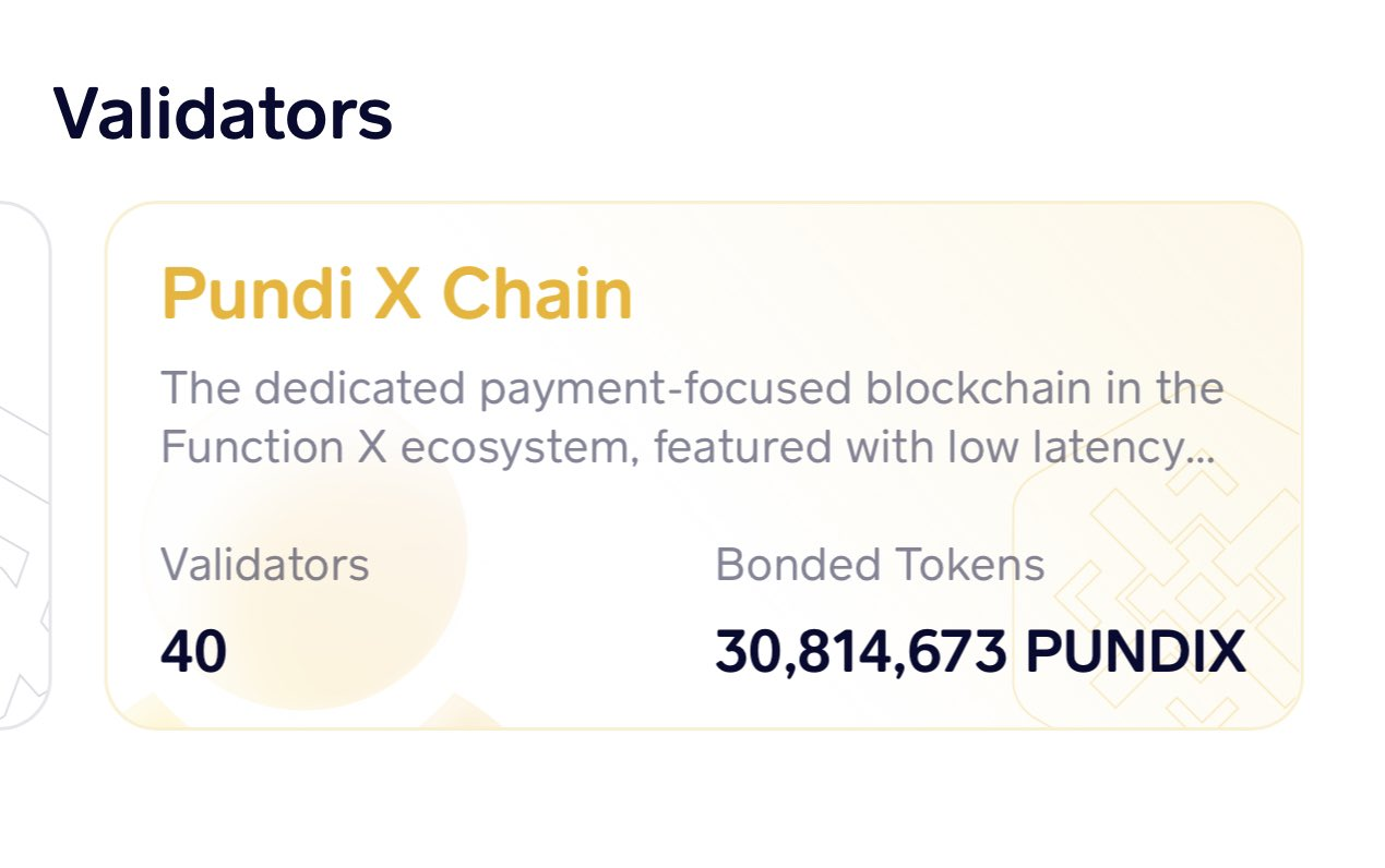 Marks 2 years now as a payment-focused layer 2 chain on Function X ecosystem. Pundi X Chain currently has 40 validators, and more than 10% of PUNDIX supply is delegated to it.