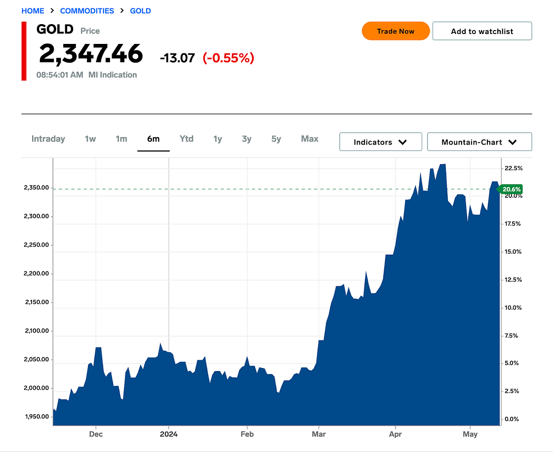 The gold price keeps breaking new record highs. It is seeing constant growth, and has reached over 13% in May, 2024. In addition to a significant increase of jewellery demand in countries such as India and China, according to the World Gold Council, Central bankers are increasingly buying large amounts of gold to diversify their foreign exchange reserves and decrease their dependence on the U.S. dollar. This surge in gold acquisitions by central banks is driving gold prices to new highs.
